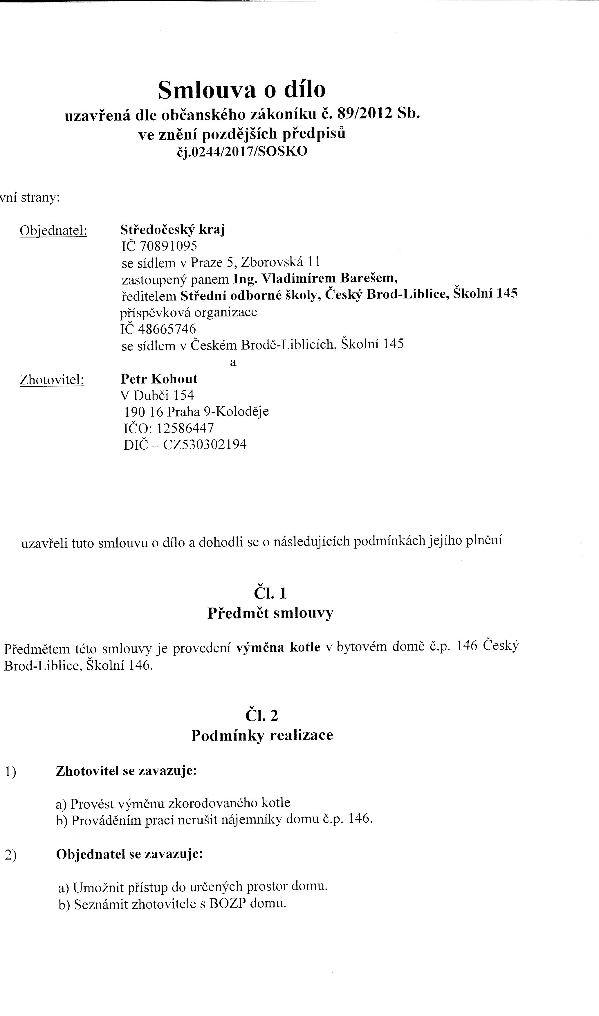 Smlouva: Výměna plynového kotle v bytovém domě č.p. 146