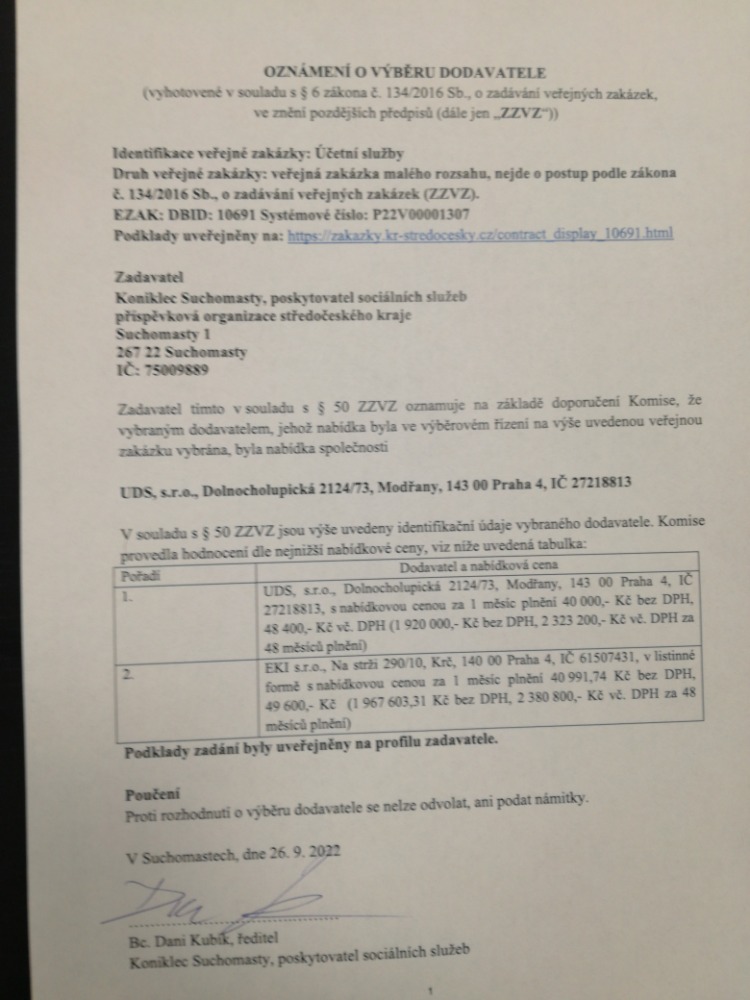 Úřední název: Koniklec Suchomasty, poskytovatel sociálních služeb