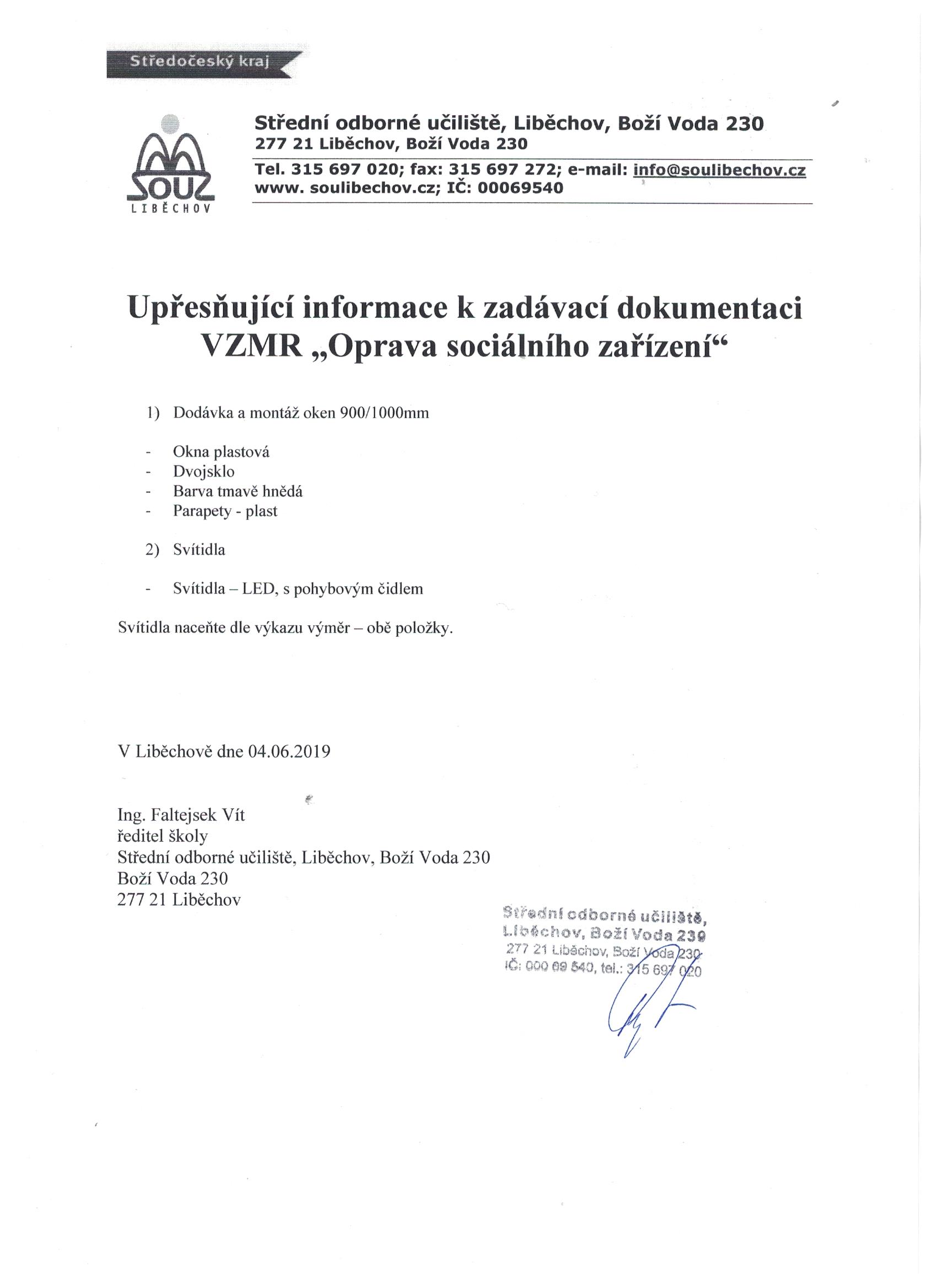 Upřesnění zadavací dokumentace VZMR Oprava sociálního zařízení