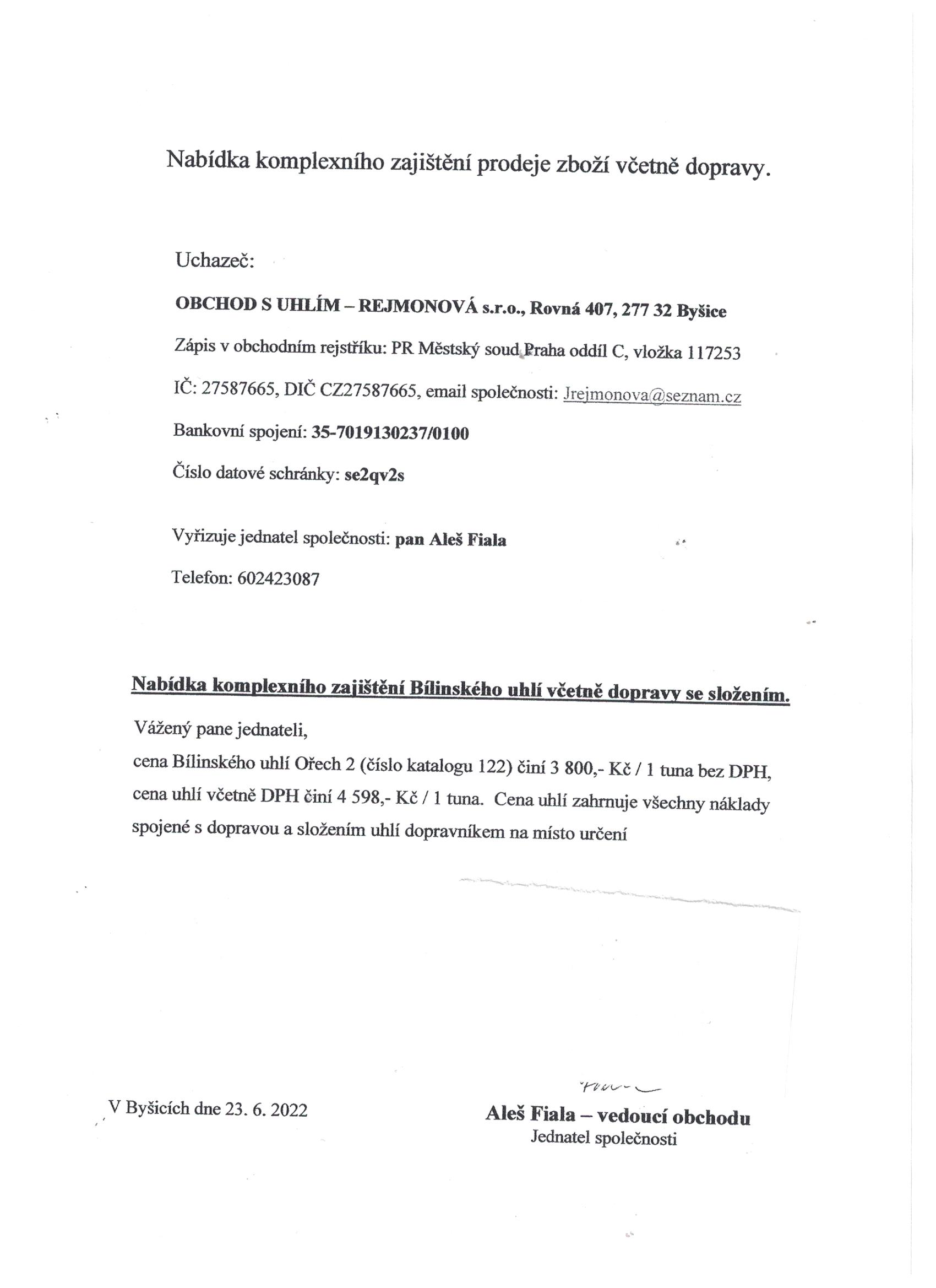 Cenová nabídka | ostatní dokumentace - veřejná |
