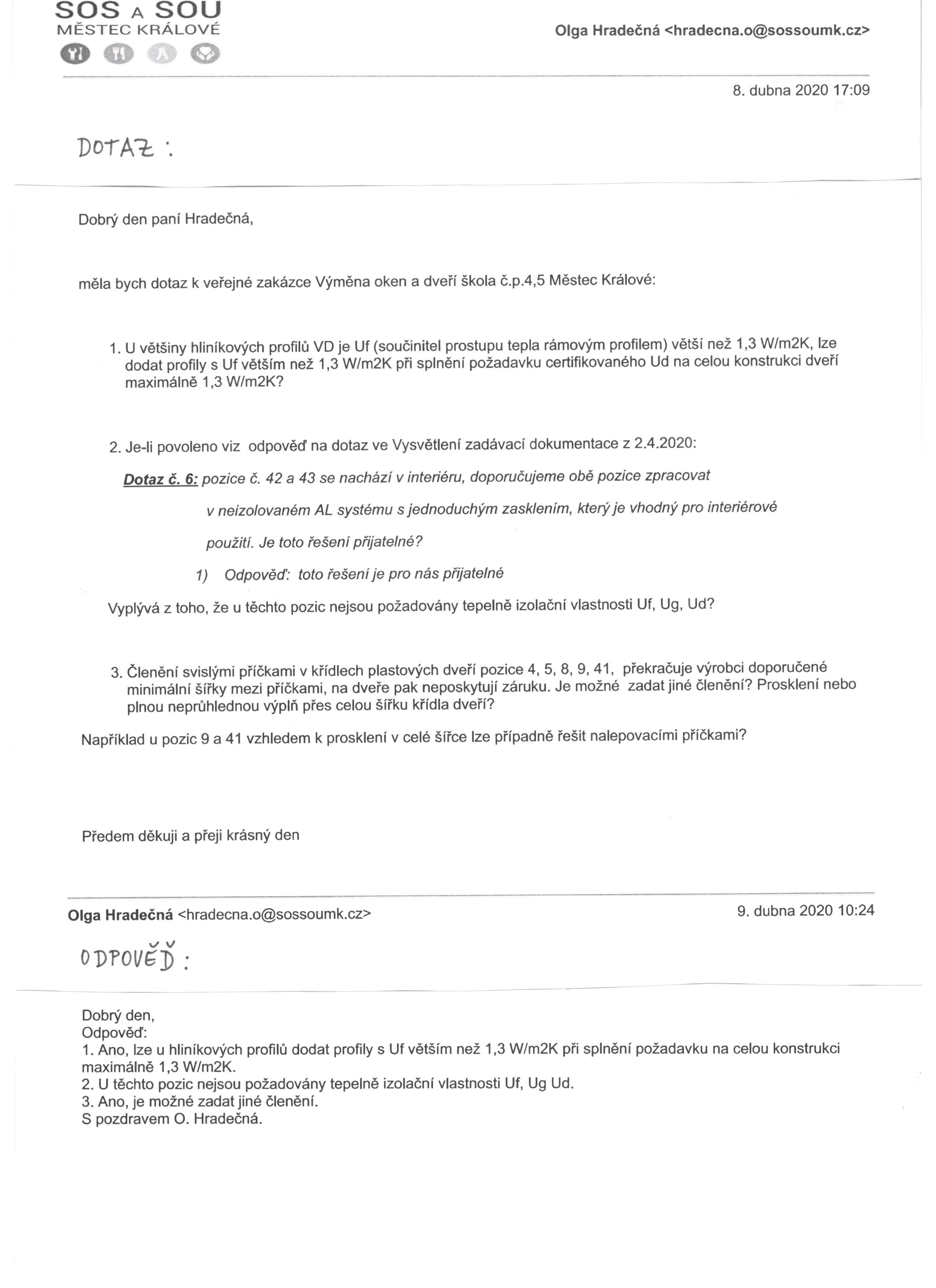 Dotaz a odpověď. | Dotaz a odpověď. | ostatní dokumentace - veřejná |