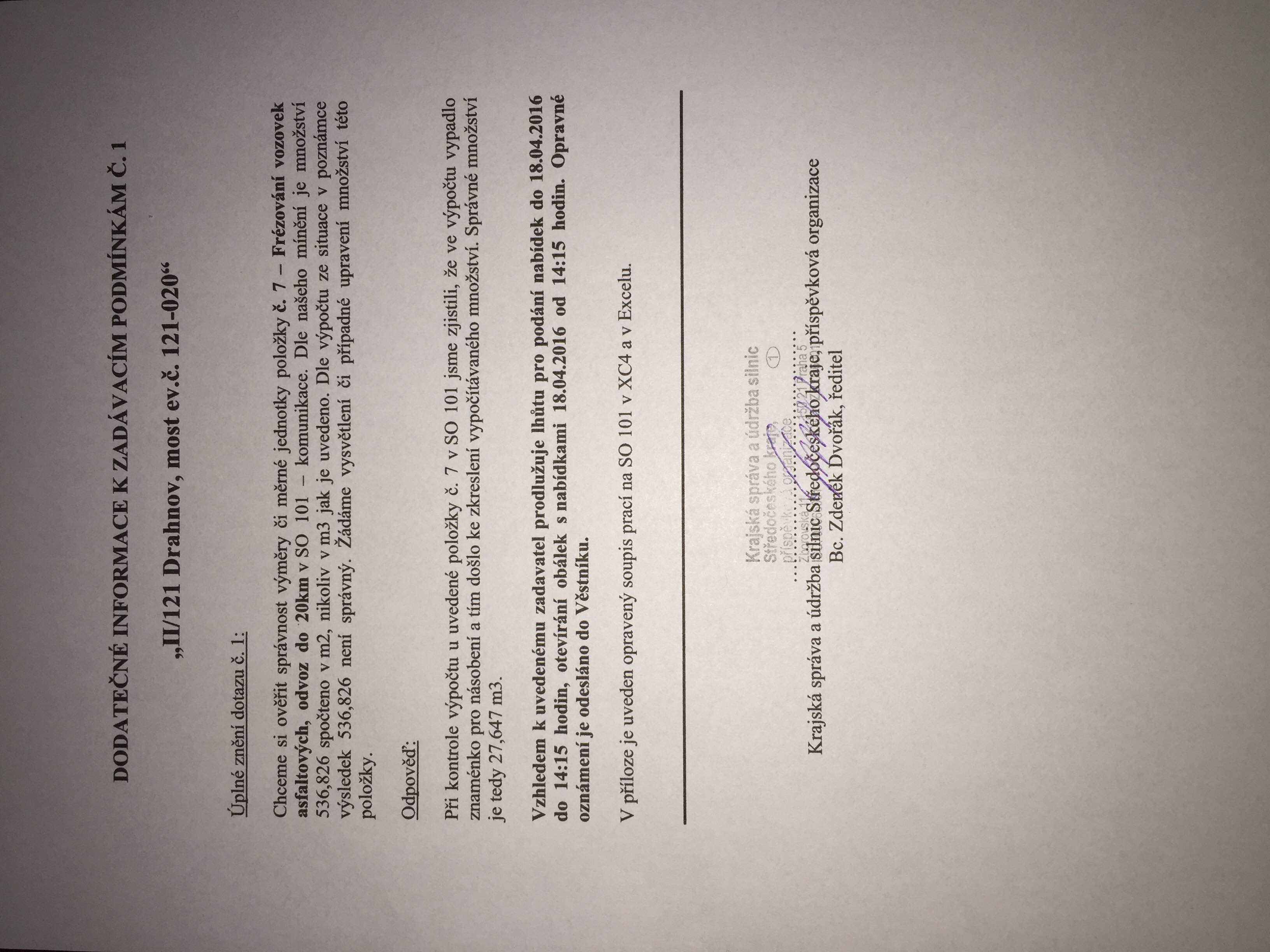 | Název: | Dodatečné informace č. 1 |